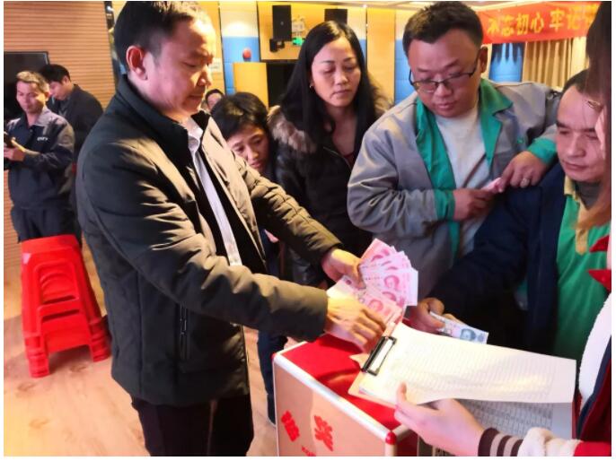 赵总和郎总回到工厂后,立刻发出公开信号召全体同仁发扬“一人有难,八方援助“的优良传统,伸出援助之手,捐出力所能及的一份“爱心”,献上一片真情。并组织员工在工厂多媒体厅进行了募捐活动……